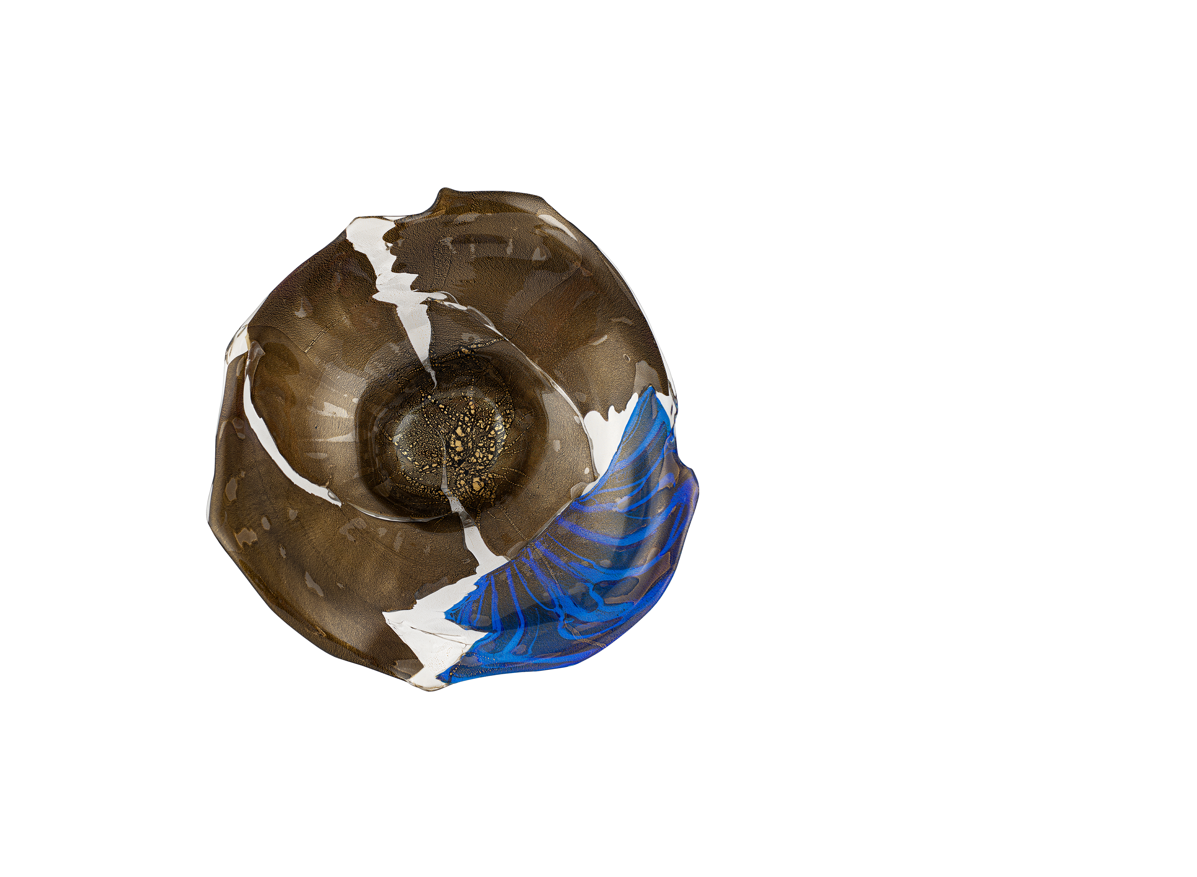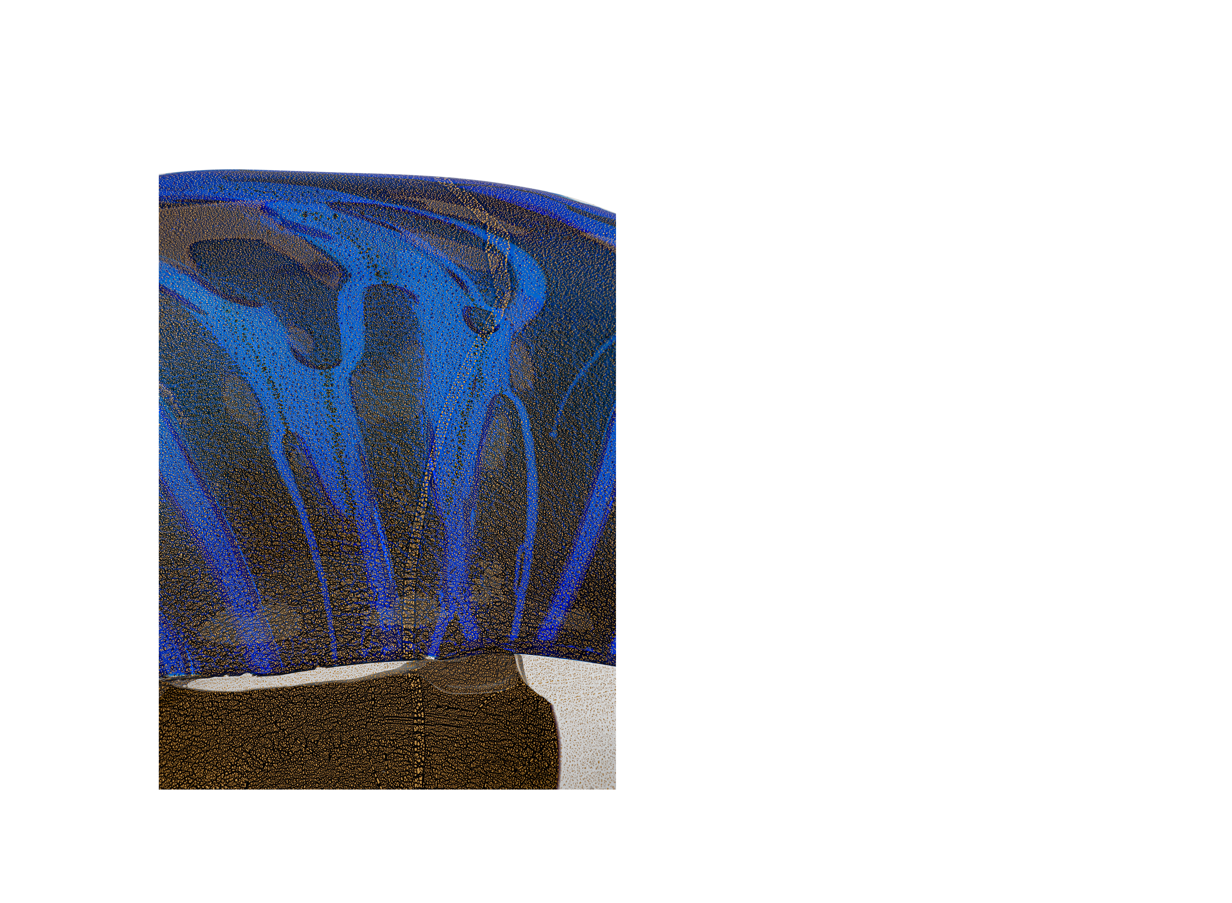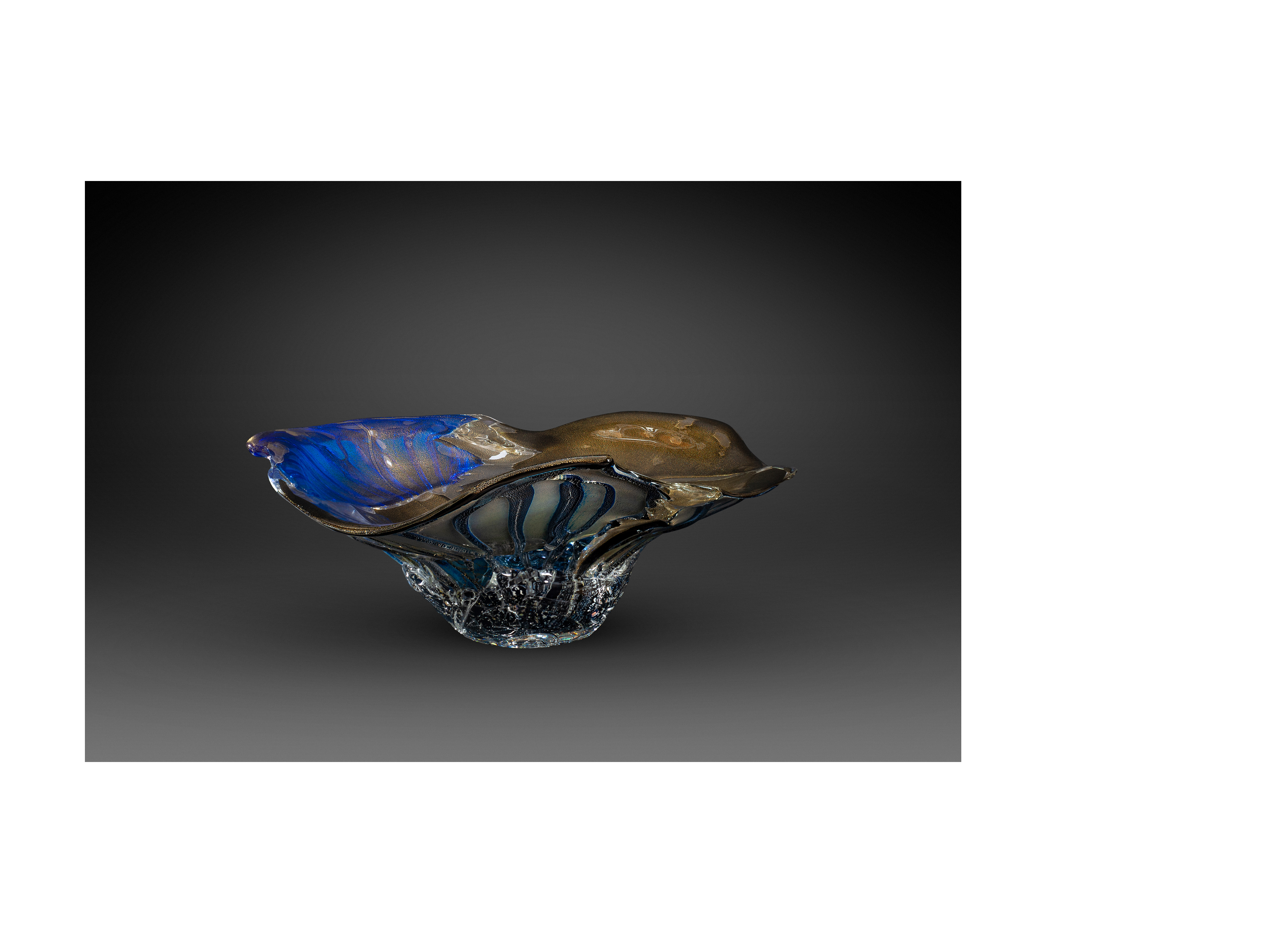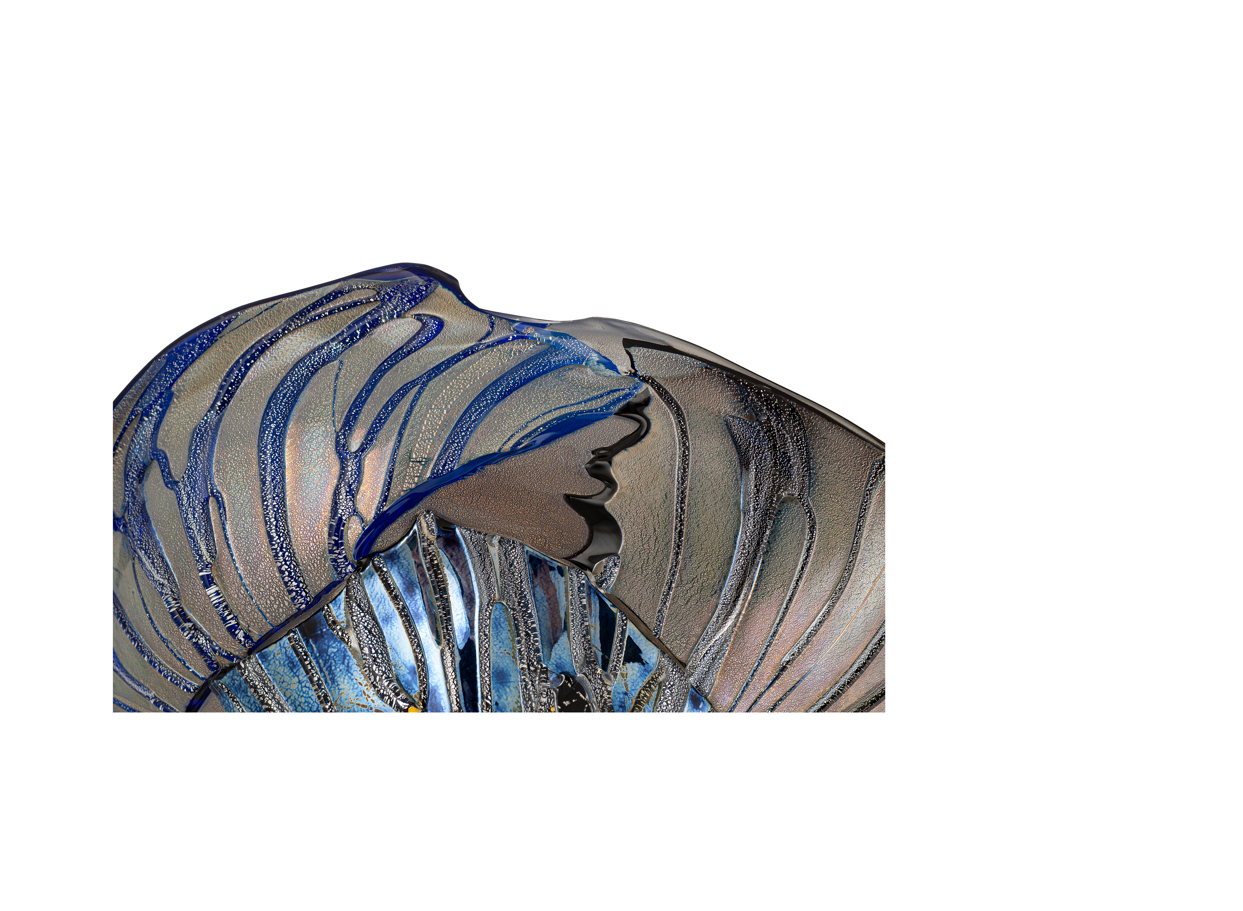 Предмет представляет собой образец современного художественного стекла Японии. Форма вазы напоминает собой перевернутую широкополую шляпу, позволяя насладиться игрой света, скользящего по волнам стекла, создающего живую непрерывную игру бликов и рефлексов. В своих работах мастер Нисинака Юкито обращается к технике реставрации кинцуги, суть которой заключается не в сокрытии следов трещин, а в их намеренном обнажении. Бережное отношение к истории бытования вещей, ставшее популярно сегодня, Нисинака Юкито преобразует в идею возрождения.