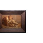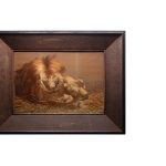 Предмет представляет собой вышитую шелковыми нитями картину с изображением льва и львицы. Запечатленный образ является повторением более ранней работы с аналогичной композицией.