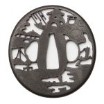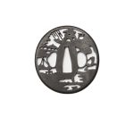 Напоминает стиль перфорированных цуба школы Акасака . Имеет подпись: 菊永直芝 — Кикунага Наосиба.